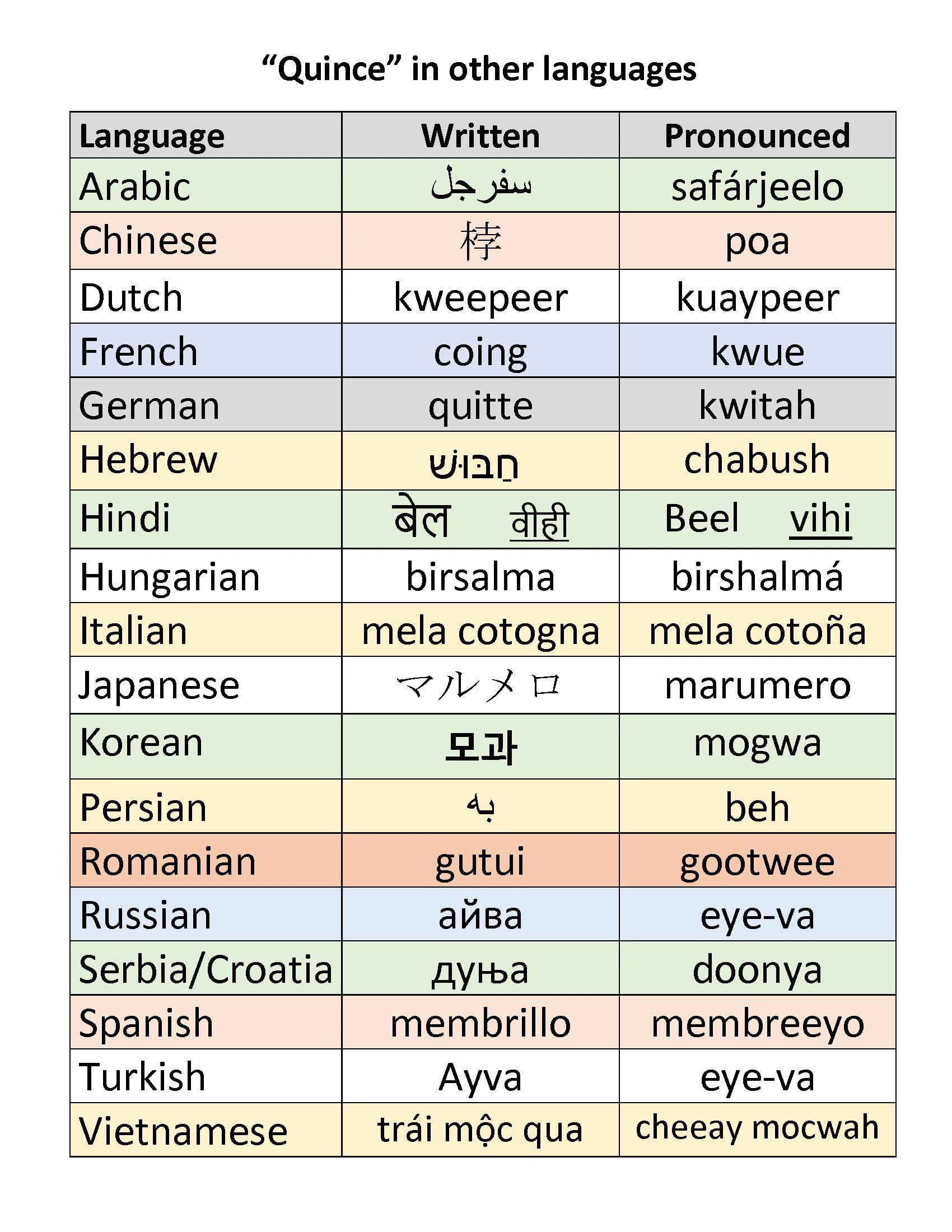 how to say "quince" in other languages?